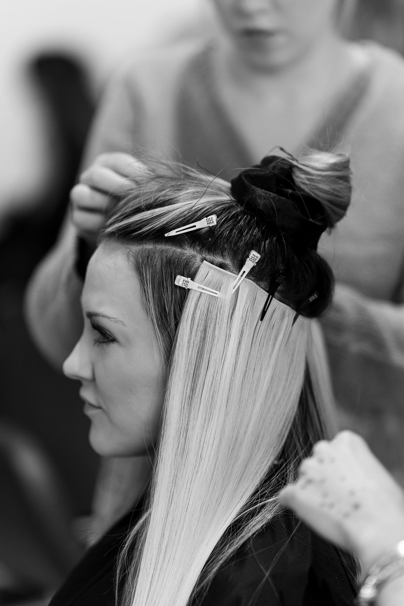 Our traditional hand-tied installation method allows clients to wear extensions without damaging to their natural hair. Like our No-Show Method, it is ideal for both our Narrow Edge and Luxury line extensions, and the stylist is able to make the rows as thick or as thin as the client desires.